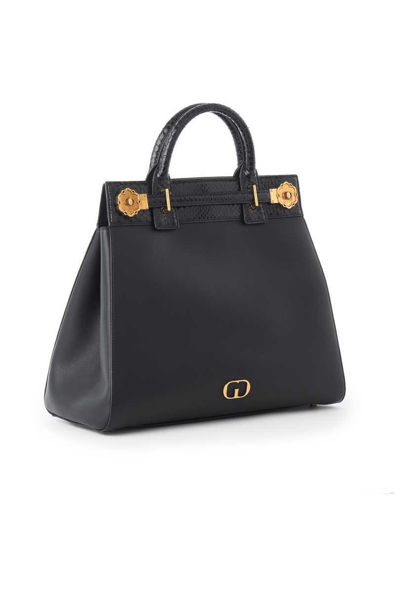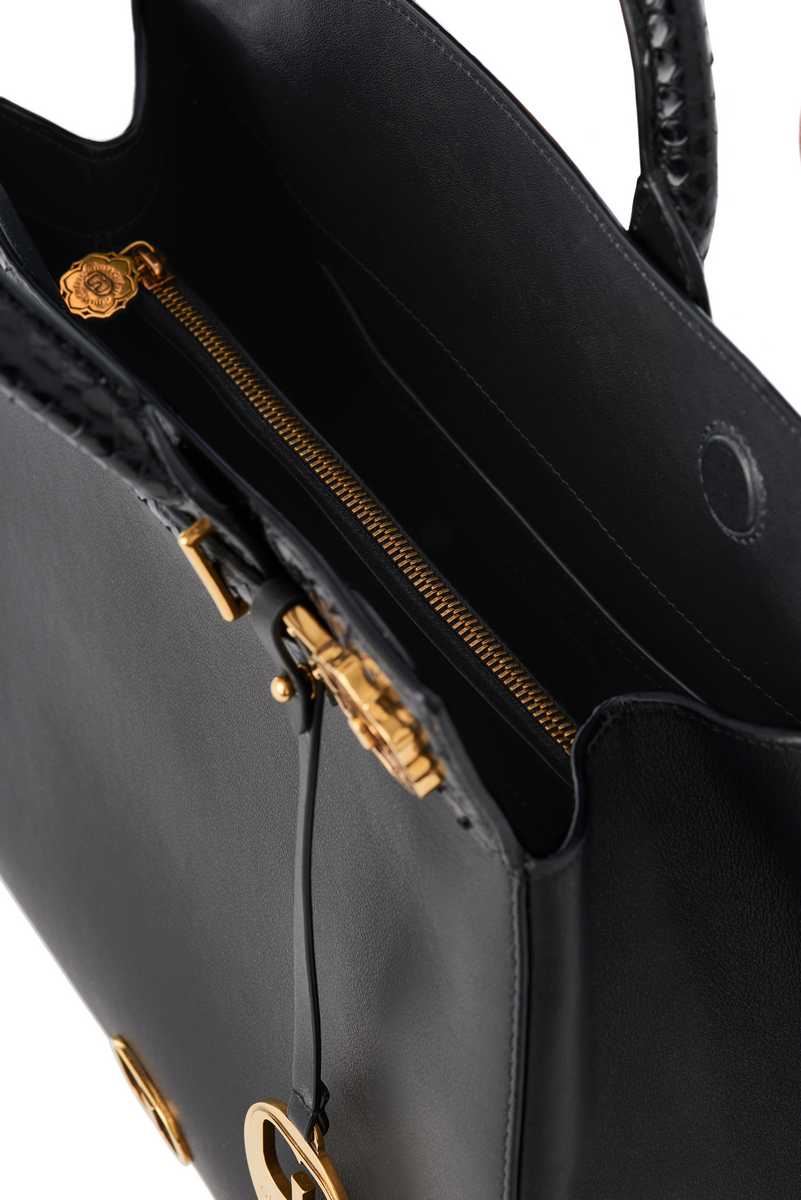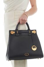 Shoulder bag model Tote in soft calfskin leather with golden details. Spacious and functional design.