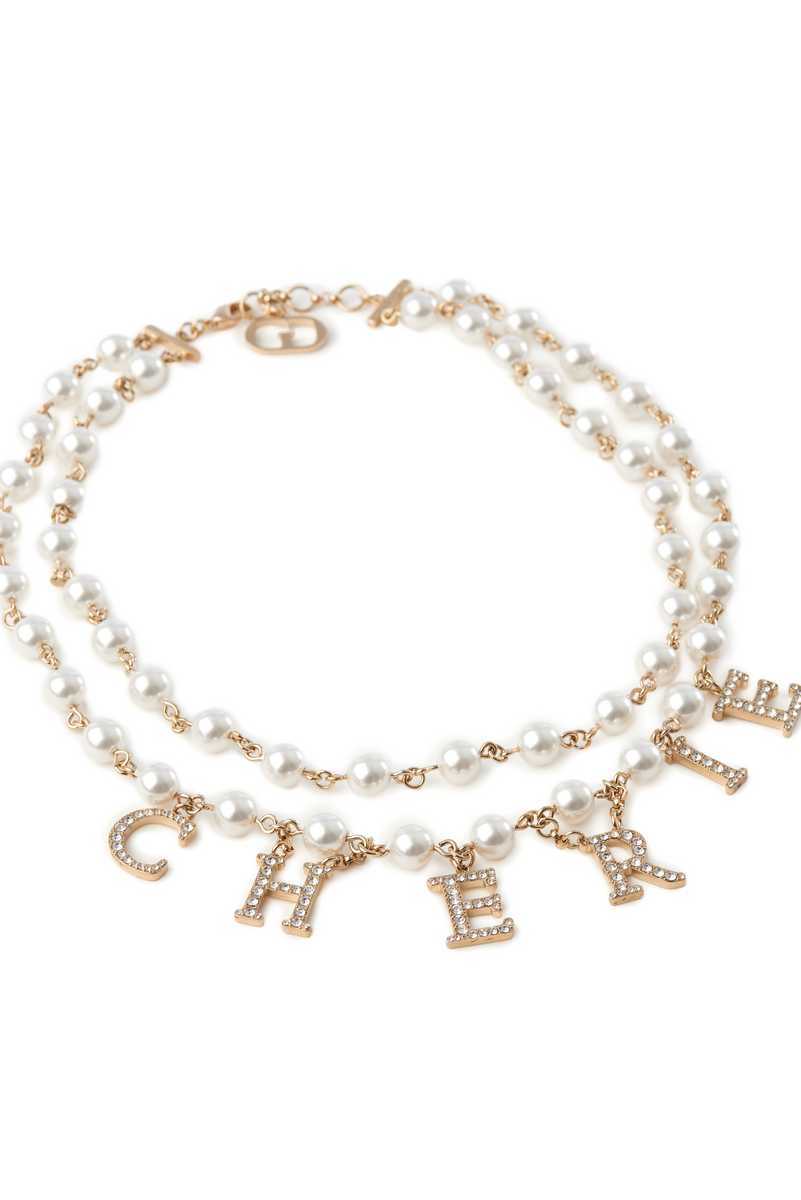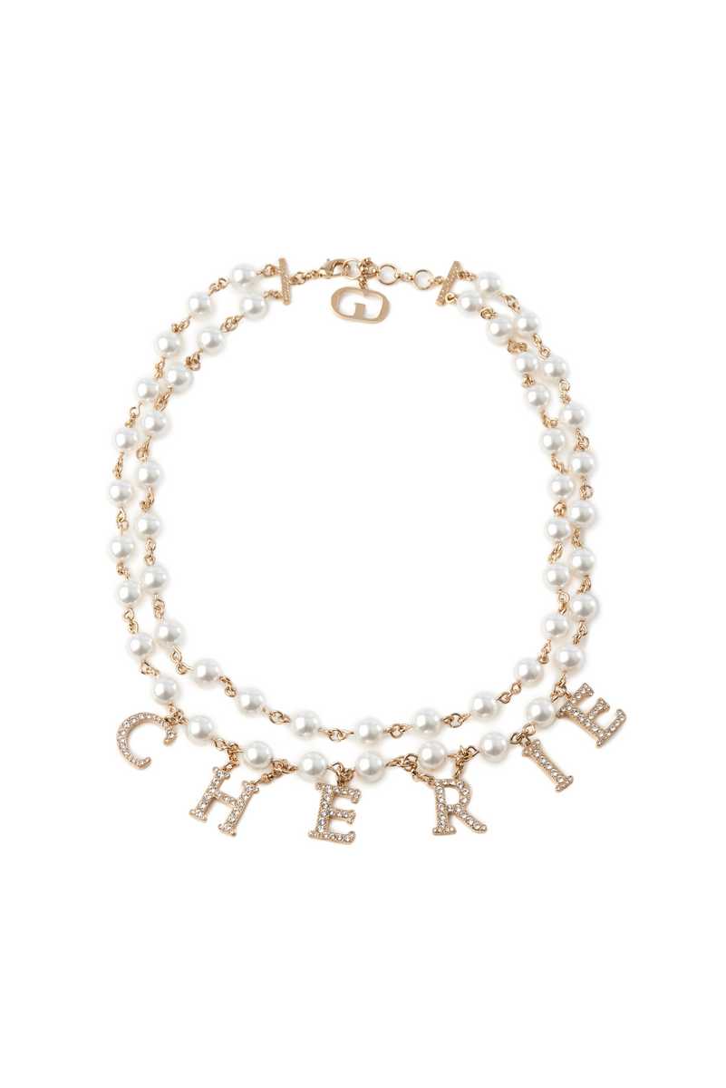 Silhouette semplice ed elegante, la collana gioca con elementi classici come le perle bianche e innovativi come gli charms lettering Cherie.