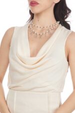 Perle e cristalli Swarovski, un mix prezioso, raffinato e lucente, che rende questa collana un accessorio raffinato e chic per ogni tipo di look.