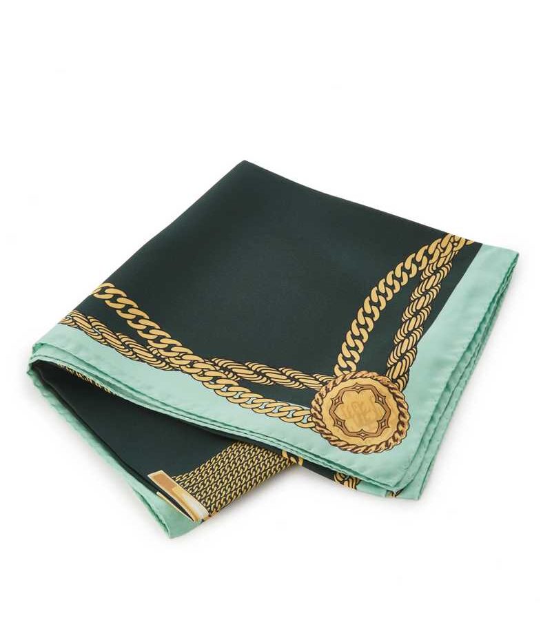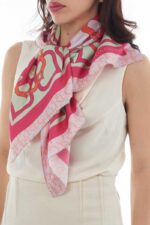 La silhouette EsaFlos prende vita e diventa una cornice, un decoro raffinato per un foulard dall’eleganza senza tempo.