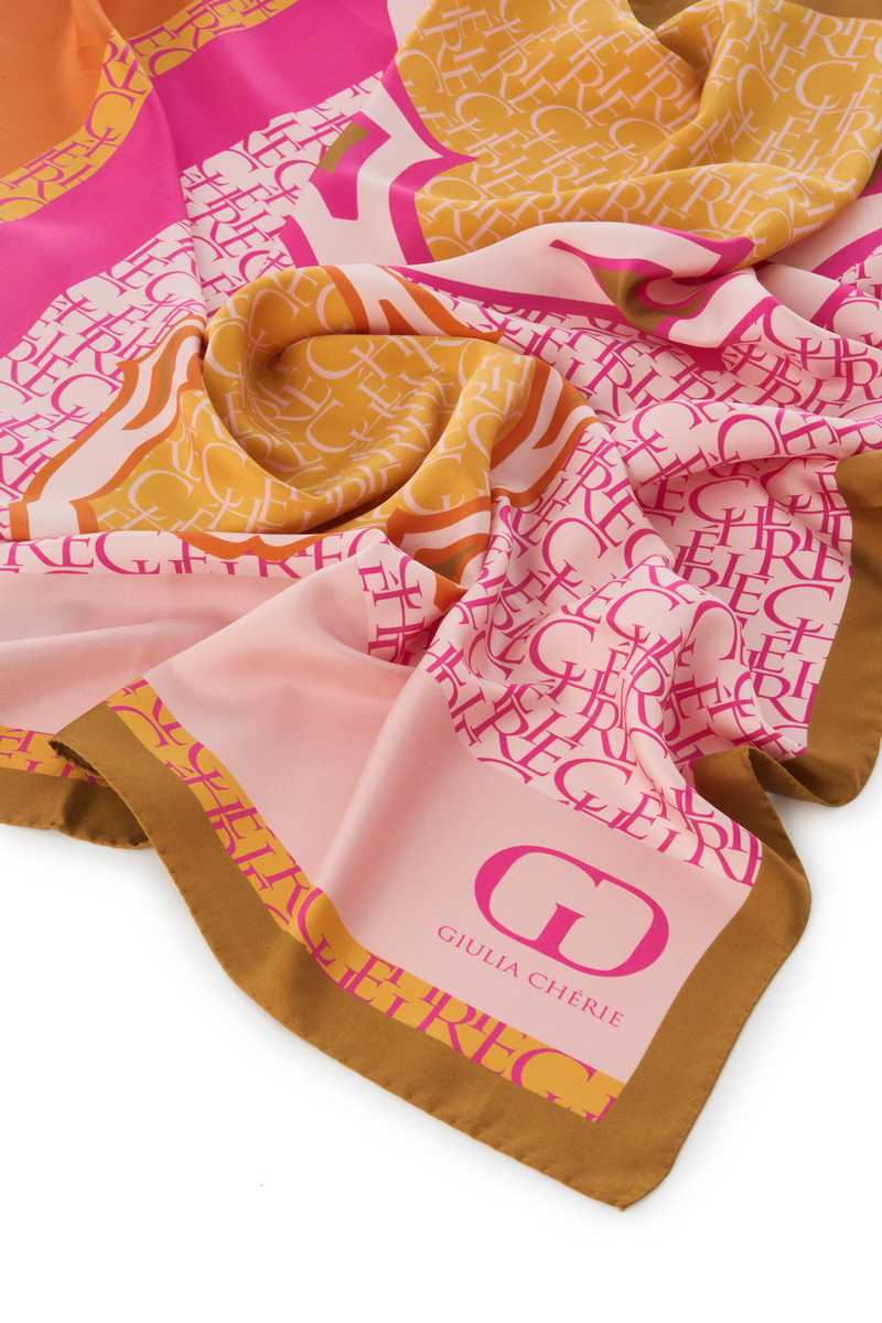 Il logo geometrico del brand Esalogo, disegnato in doppia misura in stile pop-art, è protagonista assoluto di questo foulard e decorato sullo sfondo dal pattern Cherie Oblique.
