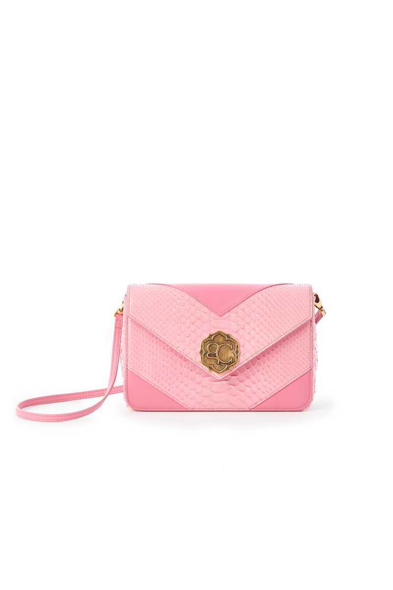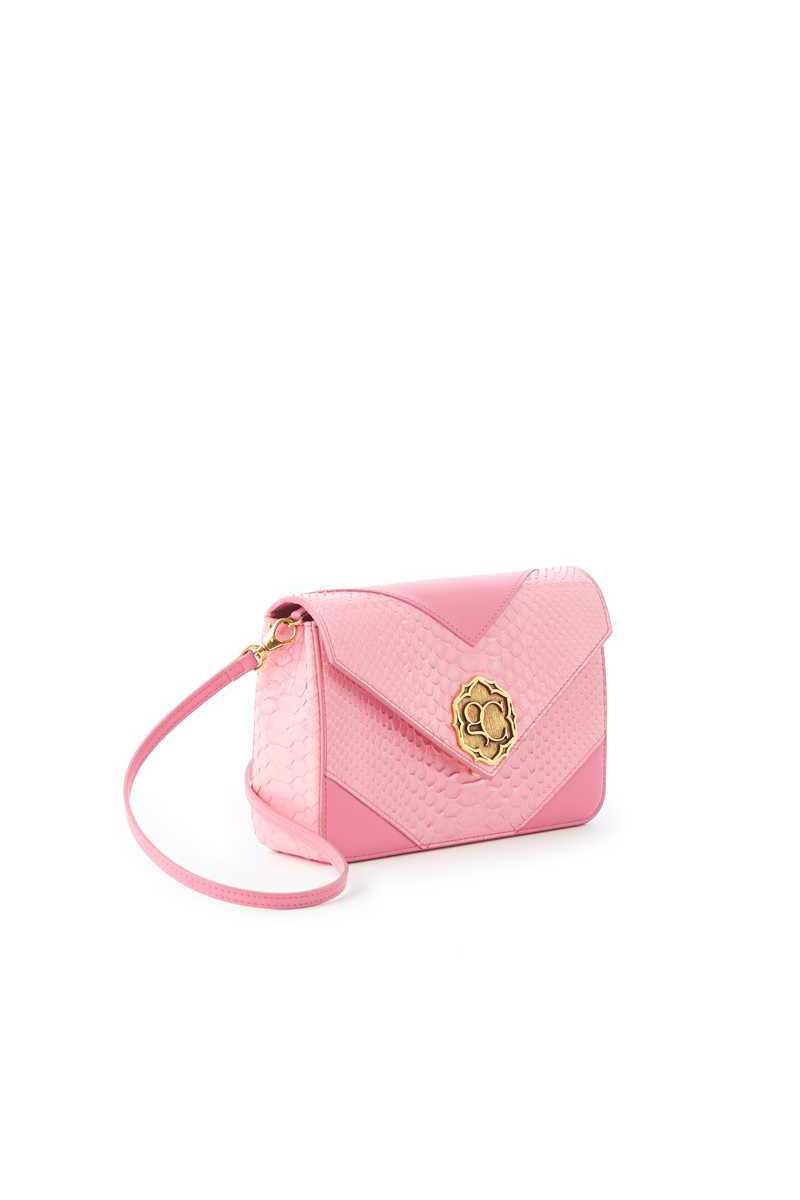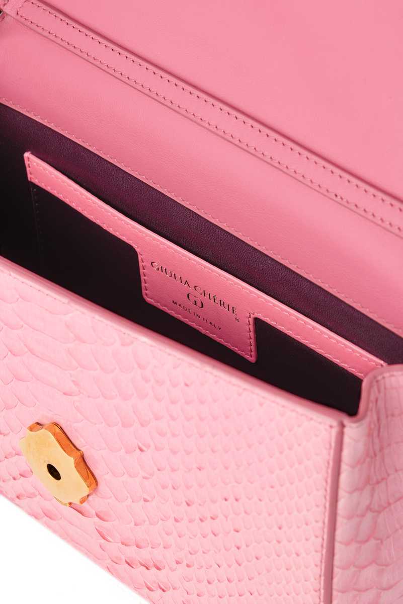 Realizzata con un mix di pelle di pitone e morbida pelle di vitello nei toni vibranti del rosa begonia, per interpretare i trend cromatici del momento.